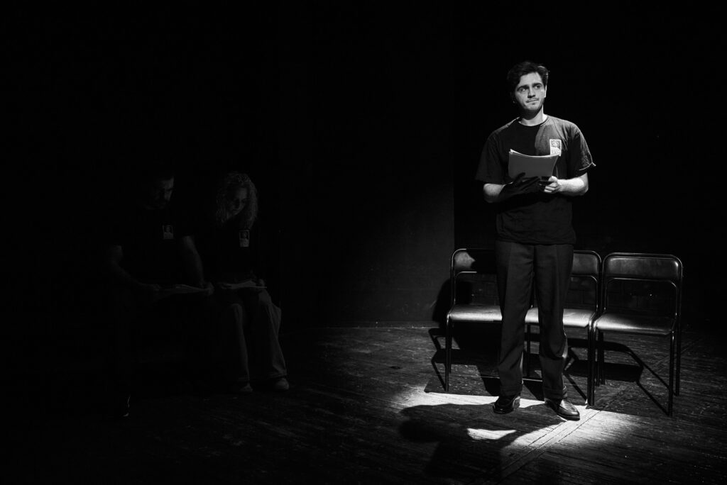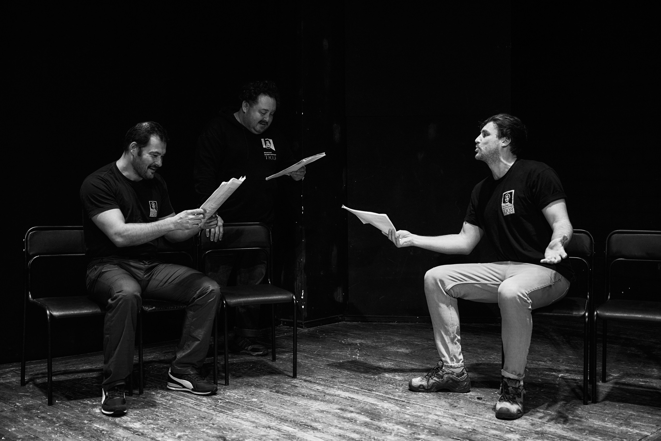 Первой читкой в нашем театре стала пьеса Яны Ореховой «Просто жить», затем – «Фуга ля минор» Артема Малахова, которая сегодня уже вошла в репертуар ТЮЗа. Третьей работой стало произведение Ольги Погодиной-Кузминой «Хорошие фото с поминок», основанное на рассказах реального участника СВО Николая Чернобровкина, потерявшего на фронте ногу.